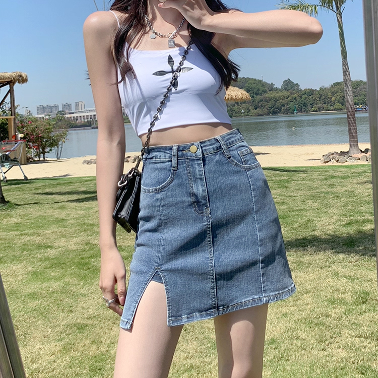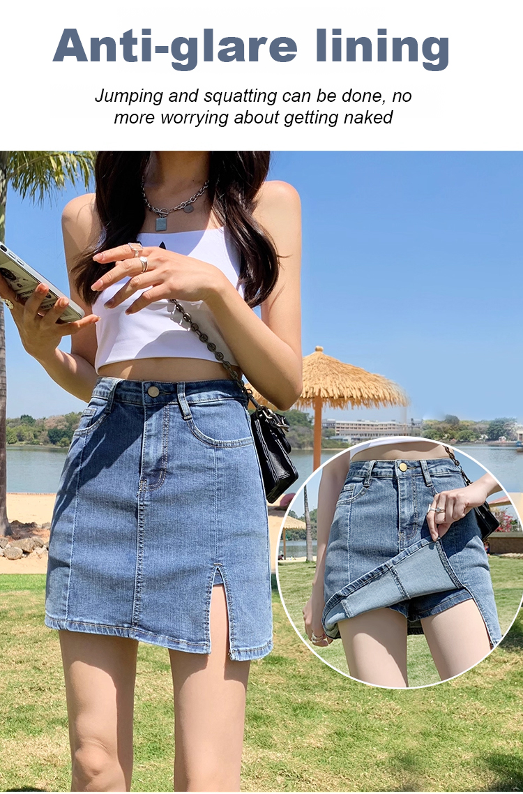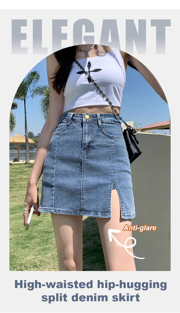 [Anti-exposure] High-waisted hip-wrapped slit denim skirt